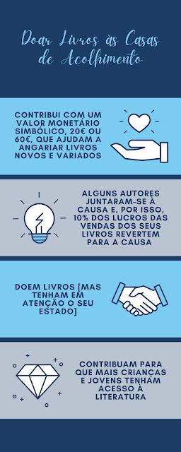 Inspirada por esta realidade, a Patrícia Morais decidiu criar uma campanha solidária, que consiste na compra de livros de autores nacionais e na consequente doação às casas de acolhimento residencial. Visto que «a exposição e a escolha são dois elementos para atrair as crianças e os jovens à leitura», é importante investirmos na sua componente literária, «certificando-nos que ninguém é deixado para trás». Deste modo, unidos, podemos fazer a diferença no seu futuro e na descoberta de uma nova paixão artística, alargando-lhes horizontes.