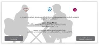 O programa Ensaio Geral, da jornalista Maria João Costa (Rádio Renascença), vai fazer a sua estreia com público. Já não é a primeira vez que sai dos estúdios da rádio, mas é a primeira vez que se grava perante uma plateia que assistirá à conversa, desta vez com Vasco Graça Moura. A sessão está marcada para hoje, às 18h30, na Livraria Ferin, e é a primeira de uma série de sessões do Ensaio Geral ‘ao vivo’, uma organização da Ferin em parceria com a Rádio Renascença e os Booktailors.