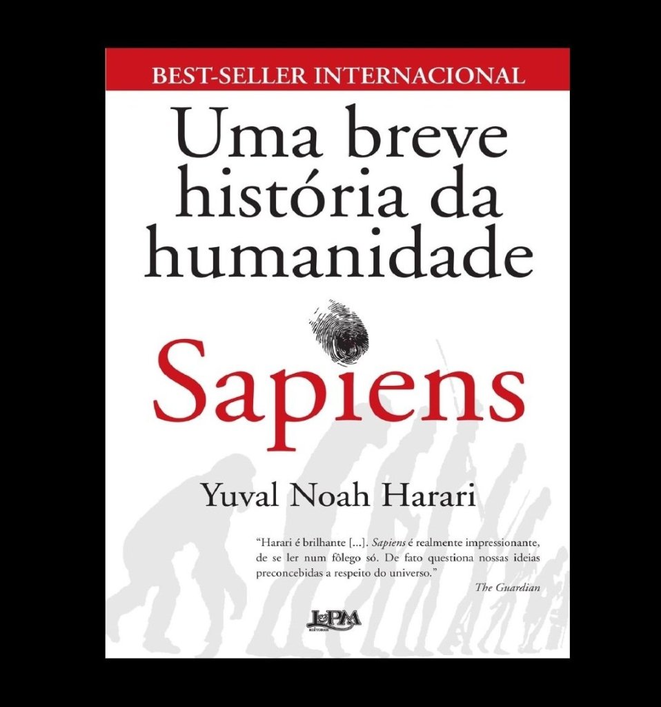 Dividido em 4 partes, temos a revolução cognitiva (pré história – caçadores coletores, biologia), revolução agrícola (conceito de trabalho e casa), unificação da humanidade (1500 a 1945) e a revolução científica (até os dias de hoje).