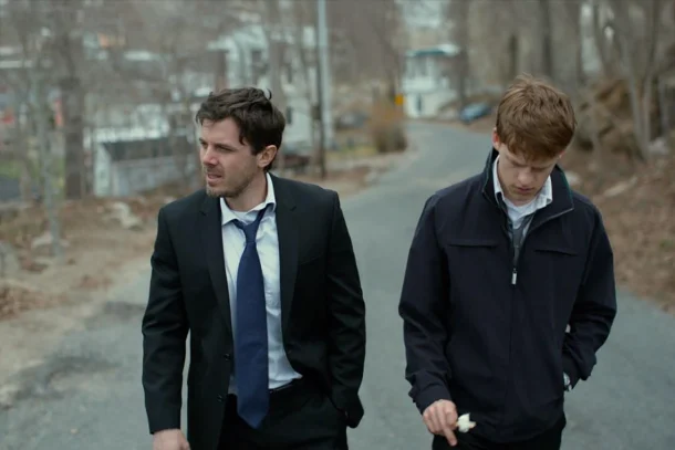 Divulgação / Sony Pictures ReleasingUm homem solitário retorna à cidade natal após a morte do irmão e descobre que se tornou tutor do sobrinho adolescente. O reencontro com as ruas geladas, os portos de pesca e os rostos familiares é atravessado por lembranças dolorosas que ele tenta esquecer a todo custo. A relação com o sobrinho oscila entre afeto e conflito, revelando que o luto nunca é linear. Ao longo da narrativa, surgem fragmentos do passado que explicam sua apatia, expondo uma tragédia pessoal que o deixou emocionalmente paralisado. O enredo se constrói em silêncios, olhares e diálogos secos, em contraste com explosões de dor que revelam feridas profundas. Não há redenção fácil nem milagres de reconciliação, apenas a constatação de que algumas dores não desaparecem. O mar, constante e indiferente, torna-se metáfora da vida: sempre em movimento, mas sem prometer consolo.