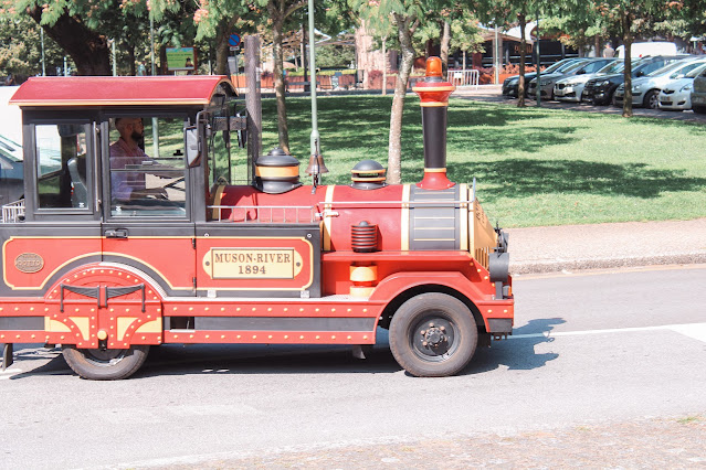 [Acredito que a melhor maneira de conhecermos um lugar é percorrendo as suas ruas, para descobrirmos detalhes que facilmente nos escapariam e para encontrarmos rotas alternativas, sempre escondidas para olhares passageiros. No entanto, acho um amor existirem estes comboios turísticos. Nunca andei num, mas não resisto a fotografá-los, enquanto imagino os trilhos por onde poderão seguir. Qualquer dia, aventuro-me numa viagem, mas por um local que já tenha visitado, pois acabarei por redescobri-lo de outras perspetivas].