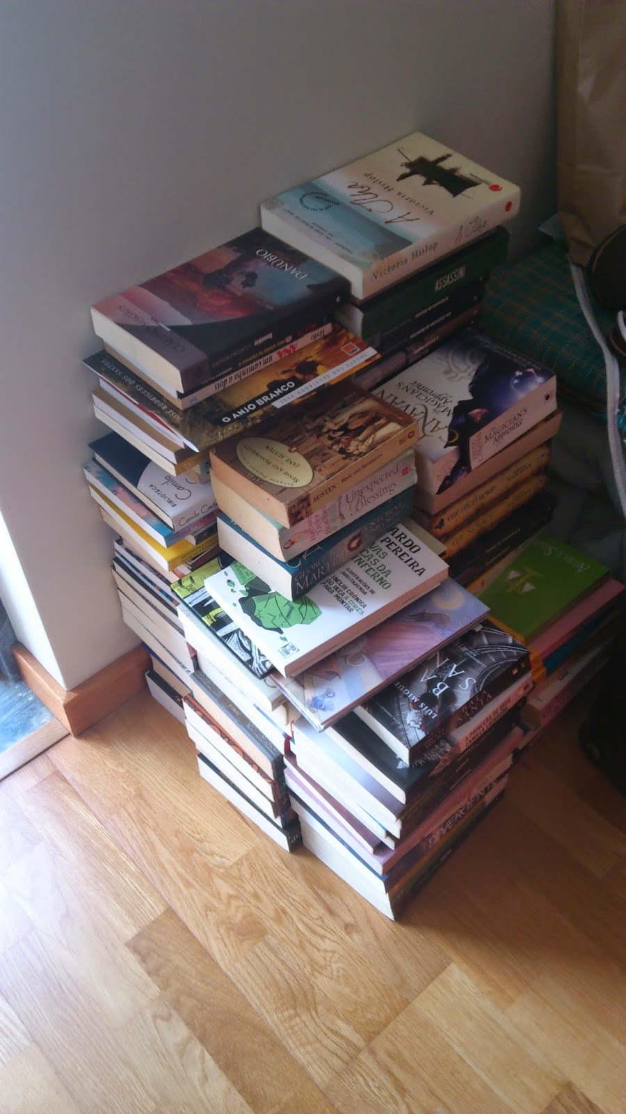 O resultado final deixou-me um bocadinho em estado dechoque: tenho quase meia centena de livros por ler. Dois quadrados da minhaestante estão dedicados a livros por ler. Nunca tinha feito esta separação eassustei-me. Detesto ter livros por ler e desta vez tenho a noção de que voulevar cerca de 2 anos a ler isto tudo – e isto se não comprar nada de novo,coisa completamente impossível)