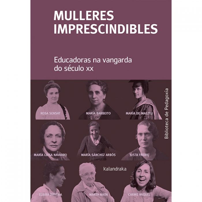 Nese ronsel incorpórase Mulleres imprescindibles: un volume de autoría colectiva que vén da man de destacadas investigadoras no eido biográfico e pedagóxico e que se conforma por nove achegas realizadas ad hoc para este proxecto e que, por xunto, constrúen unha monografía orixinal que rescata e pon ao día referentes, nalgúns casos aínda nesa zona de sombra da historia educativa máis recente. Velaquí unha posibilidade que permite descubrir ou redescubrir, nun monllo de análises rigorosas e lúcidas, accesibles para todo tipo de público, algunhas das claves de educadoras como foron Rosa Sensat, María de Maeztu, María Luísa Navarro, María Sánchez Arbós, Justa Freire, Elbira Zipritia, Marta Mata, Carme Miquel ou a galega María Barbeito.