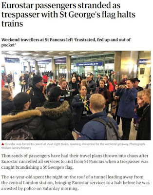 Em sinal de protesto contra o adiamento do Brexit, um homem de 44 anos, com a bandeira de São Jorge embrulhada à volta do corpo, passou a noite no telhado do túnel da estação internacional de St Pancras, no centro de Londres, obrigando ao cancelamento de todos os serviços do Eurostar agendados para hoje.