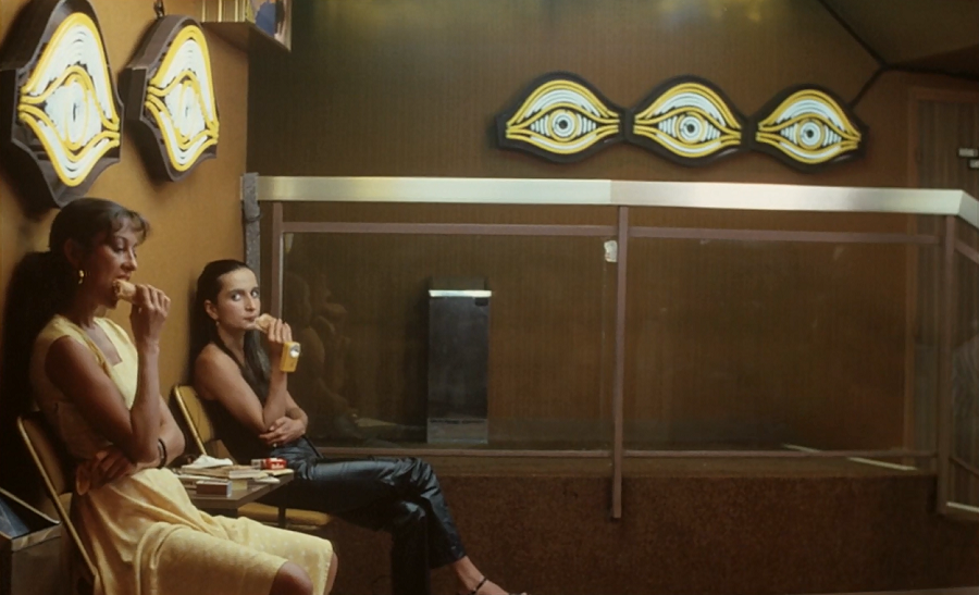 Mal visto, o hall de um cinema para o qual o olhar não se dirige habitualmente, estendido já para o fora de campo da tela, ainda mais mal visto aquele de um cinema pornô com seus clientes furtivos que querem se tornar invisíveis. Mal vista (no sentido popular), uma boate homossexual, ainda mais feminina, mal visto (e deslocado) subir em plena madrugada no carro de um paquerador. Porém, todos os lugares inquietantes, porque escondidos (logo mal vistos) se tornam centros de polarização do olhar, iluminados no meio da noite, e a presença de Simone, a forma com que ela tem de ocupá-los, de habitá-los, os torna de repente mais familiares que o possível.
