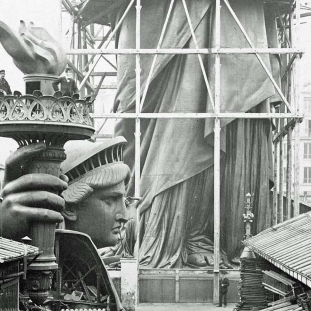 Ilustração: Estátua da Liberdade em construção. Paris, 1883 (domínio público).