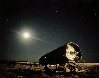 Para mim são particularmente comoventes as fotos do lixo espacial, feitas numa região desértica onde caem as partes descartadas dos foguetes que os russos mandam ao espaço. Segmentos inteiros dessas naves, do tamanho de um vagão de trem, descem do céu trovejando e em chamas, e espatifam-se contra o chão do deserto. Sempre que um deles é avistado (grupo de catadores de lixo ficam de tocaia, após os lançamentos, com binóculos), os caras pulam dentro dos carros, ligam o motor e partem à toda para lá. Com maçaricos e serras, eles desmancham os pedaços de foguete para vender o metal –ligas de titânio caras e resistentes.