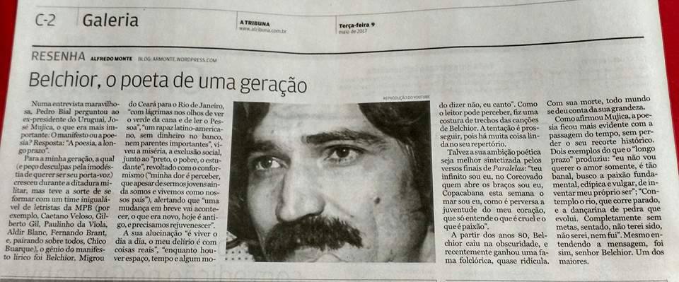 Para a minha geração, a qual (e peço desculpas pela imodéstia de querer ser seu porta-voz), cresceu durante a ditadura militar, mas teve a sorte de se formar com um time inigualável de letristas da MPB (por exemplo, Caetano Veloso, Gilberto Gil, Paulinho da Viola, Aldir Blanc, Fernando Brant; e, pairando sobre todos, Chico Buarque), o gênio do manifesto lírico foi Belchior. Migrou do Ceará para o Rio de Janeiro, “com lágrimas nos olhos de ver o verde da cana e de ler o Pessoa”, “um rapaz latino americano, sem dinheiro no banco, nem parentes importantes”, viveu a miséria, a exclusão social, junto ao “preto, o pobre, o estudante”, revoltado com o conformismo (“minha dor é perceber que apesar de sermos jovens ainda somos e vivemos como nossos pais”), alertando que “uma mudança em breve vai acontecer, o que era novo, hoje é antigo, e precisamos rejuvenescer”.