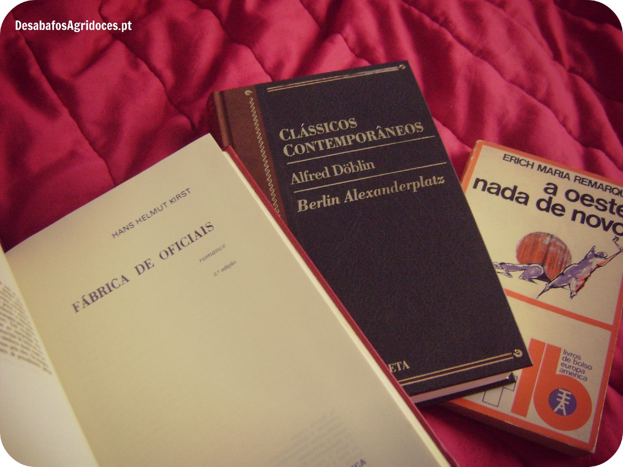 Terminei a Fábrica de Oficiais e assim está encontrada a primeira leitura deste ano. Passado em 1944, é a história de um crime ocorrido numa escola para oficiais alemães. É também a história do tenente encarregado de investigar esse crime - um tipo com demasiada espinha dorsal cujas investigações vão pôr a descoberto a bem montada máquina nazi de doutrinação de cérebros. Apesar da coisa toda se prolongar por 600 páginas (verdade e sempre no mesmo local), o livro não só não é aborrecido como é mesmo muito bom. Uma vertigem de sexo, morte e insanidade, escrito com um humor negro e com um cinismo cortante. Um pobre leitor risse às gargalhadas num capítulo e noutro a seguir já está com vontade de chorar. Se procuram histórias bonitas com adoráveis cavalheiros e cenas ao entardecer: não é neste departamento, mas aos interessados recomendo deveras. Não é apenas um excelente retrato histórico mas também tem interessantes reflexões sobre a natureza humana - sobre o bem e o mal, sobre saber pensar por si próprio e ter coragem em tempos hostis. Devia ser um livro datado. Mas não é. As outras duas coisinhas que decidi incluir na fotografia também são muito recomendáveis. Entretanto também acabei a Ponte sobre o Drina: bom no começo, aborrecido no meio, chegar ao fim é um acto de masoquismo. A sério. Em breve mais updates sobre o que se vai seguir.