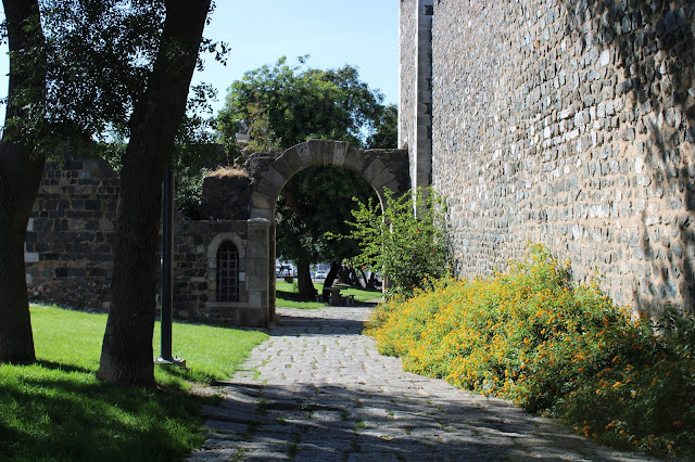 Em sintonia com a Natureza, deambulamos numa fortaleza que irradia harmonia e amores. Com mais de 2500 anos de uma identidade sem igual, iniciei o meu percurso com destino ao seu castelo. Não foi possível visitar a Torre de Menagem, uma vez que coincidiu com a hora do fecho, mas foi suficiente para apaziguar as saudades. Relativamente à sua história, sabe-se que «as muralhas decalcam ou aproveitam muros de épocas anteriores». São tipicamente medievais e preservam um traço que contextualiza o seu passado de «intensas lutas entre muçulmanos e cristãos». Disposto numa planta pentagonal, e flanqueado por seis torres, o Castelo de Beja espelha esse caráter bélico e imponente. Imediatamente na lateral, encontramos a belíssima - e amarela - Casa do Governador, que funciona como Posto de Turismo e espaço museal, «preparado para receber exposições temporárias».