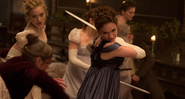Dessa forma, o filme acaba mesmo nas costas de Lily James – que até dá conta do recado – e da brincadeira visual de mostrar mocinhas inglesas altamente armadas e treinadas em artes marciais. Quem gosta da trama original e está disposto a comprar a ideia, pode se divertir sem muitas consequências.