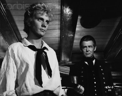 Ora, o Belo Marujo é alistado à força num navio da marinha inglesa (o ano é de 1797, e a história ocorre na esteira de graves motins a bordo de navios da frota real)[4]. Ali, levaria a mesma existência que levava no “Direitos do Homem”—uma vida meio inconsciente, analfabeta, “pura”—não fosse pela inveja que consome o chefe de armas, Claggart, cujo passado também é envolvido em brumas, contudo brumas bem menos benignas que as de Billy Budd: talvez ele tenha cometido um crime ou um ato desonroso. Claggart é a beleza sombria, a beleza que deixa os outros incomodados, é o cara pálido, que nunca pega sol, que parece ficar nos desvãos escuros do navio; enquanto Billy e a tez bronzeada, o saudável, o que reflete o mar em seus olhos.