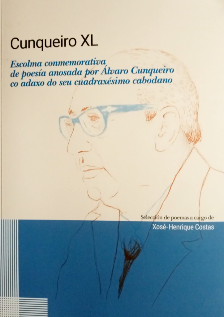 Para se sumar a esta efeméride a Facultade de Tradución e Interpretación da Universidade de Vigo promove, alén dun ciclo de conferencias e da organización dun concurso que convida á lectura das obras de Cunqueiro, unha publicación nunha edición non venal que moito nos gustaría que fose de difusión pública para persoas interesadas. Este libro, que ve a luz baixo o título de Cunqueiro XL. Escolma conmemorativa da poesía anosada por Álvaro Cunqueiro co adaxo do seu cuadraséximo cabodano, ofrece unha selección de poemas a cargo do profesor Xosé-Henrique Costas, hoxe por hoxe un dos especialistas máis salientables no proceso de recuperación e interpretación da obra dispersa ou inédita do autor do Merlín e familia.