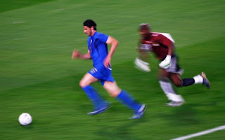 E o gol-contra do cara da Itália, para os EUA? Bola cruzada da direita, subiu todo mundo para cortar de cabeça; alguém resvalou de leve e desviou a bola. O zagueiro se preparou para rebater à distância, mas o desvio de centímetros o fez pegar “na orelha da bola”, e, em vez de estourá-la rumo ao meio de campo, jogou-a com efeito para dentro do próprio gol. Um lance que certamente vai emergir em pesadelos até o fim da vida do bravo Cristian Zaccardo.