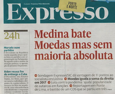 Moedas consegue o resultado de Cristas (CDS, 20%) e Teresa Leal Coelho (PSD, 11%) em 2017.