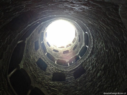 Quando se está no fundo dos poços não é difícil imaginar os rituais que se praticavam ali. É estranho, talvez por isso me agrade tanto lá ir e especialmente meter-me pelos túneis - o que no entanto não é aconselhável sem luz. Não vão querer bater com a cabeça numa saliência rochosa e abrir um lanho...O próprio palácio encaixa-se bem neste ambiente com todos aqueles pináculos e pormenores trabalhados misturando detalhes manuelinos e góticos. O interior é interessante, mas não tanto como o exterior para mim. Tem-se uma boa vista lá de cima.