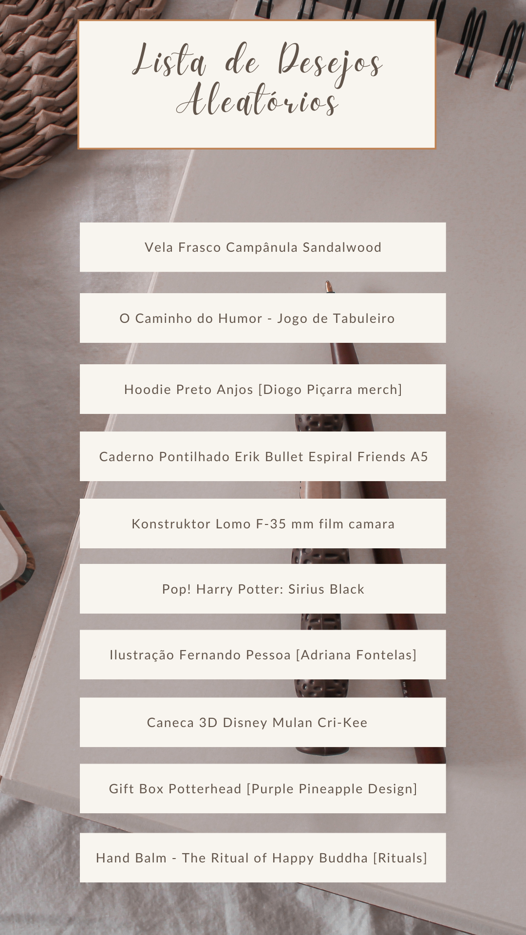 Marcadores de livros e material de escrita também são sempre bem-vindos, até porque são artigos que utilizo bastante. Num plano mais dispendioso, tenho, ainda, um gira-discos e uma máquina de escrever.