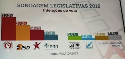 Esta sondagem da Multidados divulgada ontem à noite pela TVI coloca o PAN à frente da CDU.