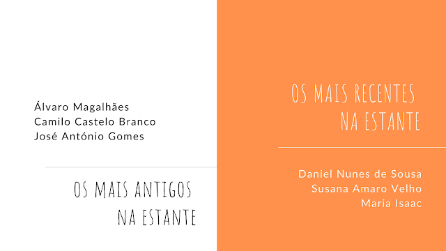 Na publicação referente ao desafio Alma Lusitana, mencionei que também partilharia os três autores que tenho há mais tempo na estante e os três mais recentes. Porque sinto que é sempre inspirador observar a mudança que se manifesta nas nossas escolhas e, inclusive, em questões paralelas, como o design das capas, o tipo de letra, as ilustrações e o abrir de portas, para acolher o clássico e o contemporâneo.