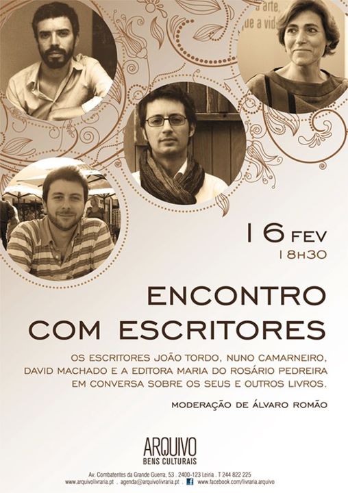 No ano passado, estava em Lisboa Mário Lúcio Sousa – actual ministro da Cultura de Cabo Verde e autor do livro O Novíssimo Testamento –, fizemos em Leiria, na Livraria Arquivo, uma bonita sessão sobre a nova literatura lusófona, também com a presença de João Tordo e Vasco Luís Curado. A Arquivo é uma livraria muito especial, de gente que gosta mesmo de livros, e estas conversas têm sempre público interessado e, graças a Deus, perguntador. Amanhã repetiremos a dose às 18h30, de novo com a ajuda de João Tordo – que falará de Anatomia dos Mártires – e com a preciosa colaboração de David Machado e Nuno Camarneiro, cujos romances Deixem Falar as Pedras e No Meu Peito não Cabem Pássaros saíram em 2011. Se estiverem por perto, não percam as vozes da nova geração. Caso contrário, leiam-nas e não se arrependerão.