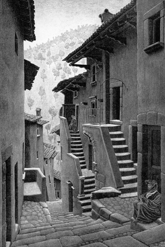 McEvoy se pergunta: “Por que certas coisas do passado surgem com essa precisão fotográfica?” No entanto, ao percorrer as mesmas ruas ele não reencontra o que relembra. O restaurante basco que os dois freqüentavam, mas que ele não consegue encontrar (“e no entanto procurei por toda a região”), um restaurante que tem o nome do coquetel com fórmula secreta que o barman preparava (“Bastaria lembrar o nome do coquetel…mas como?”): “Ontem à noite, percorrendo essas ruas, sabia que elas era as mesmas de antes e não as reconhecia. Os prédios não tinham mudado, nem a largura das calçadas, mas naquele tempo a luminosidade era outra e alguma coisa flutuava no ar”. Como se vê, no texto pós-modernista não falta o cenário, o espaço romanesco, aliás esse texto especificamente é até saturado de espaço, só que há sempre um travo de irrealidade, de evanescência. O espaço se torna abstrato, uma paisagem da alma: “Se me lembrasse dos filmes que vimos, situaria a época com exatidão, mas deles só me restam imagens vagas: um trenó que desliza sobre a neve; uma cabine de navio onde entra um homem de smoking, silhuetas que dançam atrás de uma janela de sacada”. Imagens vagas que poderiam até ser confundidas com lembranças pessoais.