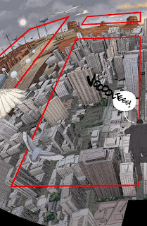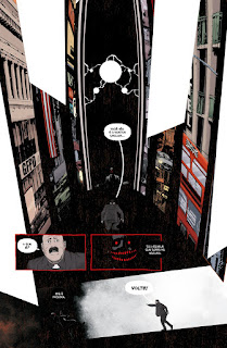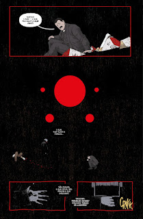 A arte e as formas diferentes de mostrar os cenários, mais ou menos fragmentados, com os tons de vermelho (e o sorriso no escuro...) tornam a atmosfera pesada e aterradora. Funciona perfeitamente, mais uma vez - especialmente notório quando há páginas inteiras sem qualquer fala.