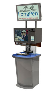Surgiu agora uma invenção da canadense Margaret Atwood (autora de Madame Oráculo, O Assassino Cego, etc.), uma engenhoca que permitirá a todo mundo dar autógrafos à distância. É uma espécie de “notepad” que se conecta a uma caneta movida por uma garra eletrônica. As palavras que são escritas na superfície do notepad no terminal “A” são reproduzidas pela garra-caneta no terminal “B”. Ambos, é claro, podem estar a milhares de quilômetros de distância.