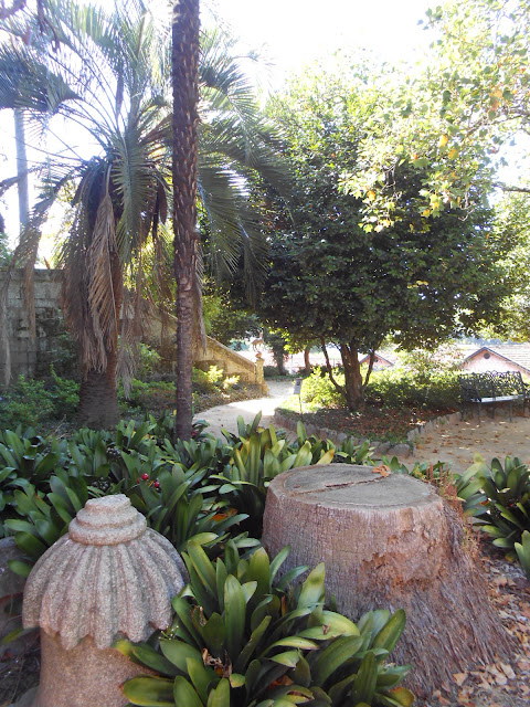 Deslocando-nos para as traseiras, descobrimos o verdadeiro mundo encantado dos jardins. Na minha primeira visita, como fui em julho, não fiquei tão deslumbrada, pois as camélias não estavam em flor. Quando regressei, em meados de março, o espetáculo já foi outro, sendo recebida por uma imagem colorida, primaveril e variada, transformando este lugar num autêntico quadro de estímulos. Vagueando pela Avenida das Camélias, vimos os canteiros delimitados «por rachões de pedra». Deslumbramo-nos com árvores exóticas. Temos a hipótese de subir a escadaria que nos leva a outros patamares - também eles marcados pela flor protagonista. Mas a Quinta das Devesas - ou o que resta dela - não é só feita de Camélias: há um lago «coroado com uma pequena ponte», tanques e uma gruta «encimada por um mirante». Neste ambiente onírico, como alguém o denominou, é impossível negar a passagem do tempo, mas a paisagem arrebatadora minimiza esse rasgo de nostalgia.