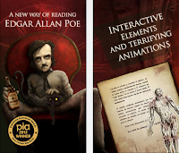 Que "livro" maravilhoso! Não é um livro normal em papel mas também não é um vulgar livro electrónico, é um livro interactivo! Com música e imagens que se animam com o movimento dos nossos dedos, personagens que respiram e ouvimos o bater do seu coração, relógios que dão horas e o "livro" vibra com as badaladas, adorei esta forma de apresentar as histórias do senhor Allan Poe.