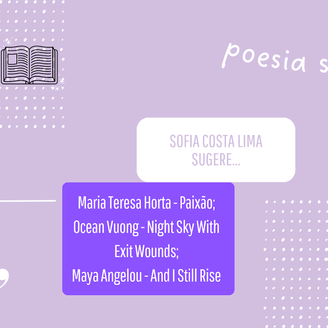 Três nomes que ainda não descobri. Quer dizer, Maya Angelou li em prosa - Carta à Minha Filha e Sei Porque Canta o Pássaro na Gaiola - e Maria Teresa Horta apenas li no Novas Cartas Portuguesas, mas, como os textos não são assinados, é como se não conhecesse a sua forma de comunicar por escrito. No que diz respeito à poesia, são vozes para conhecer e a Sofia facilitou-me a vida ao indicar três títulos de cada autor.