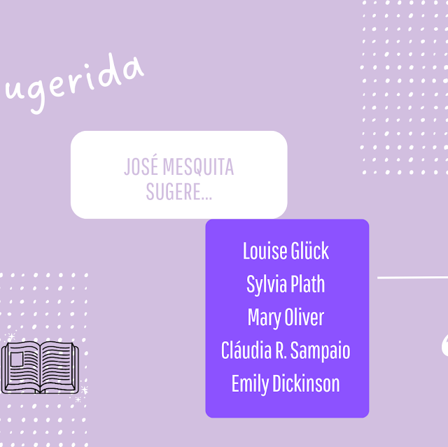 Desta lista, apenas conheço Cláudia R. Sampaio e recomendo imenso Uma Mulher Aparentemente Viva. Portanto, fui procurar pelos restantes e escolher a obra que me despertou maior curiosidade. Eis as selecionadas: Uma Vida de Aldeia (Louise Glück), Ariel (Sylvia Plath), Blue Horses (Mary Oliver), Já Não Me Deito em Pose de Morrer (Cláudia R. Sampaio) e Herbarium (Emily Dickinson) - nem todos estão traduzidos.