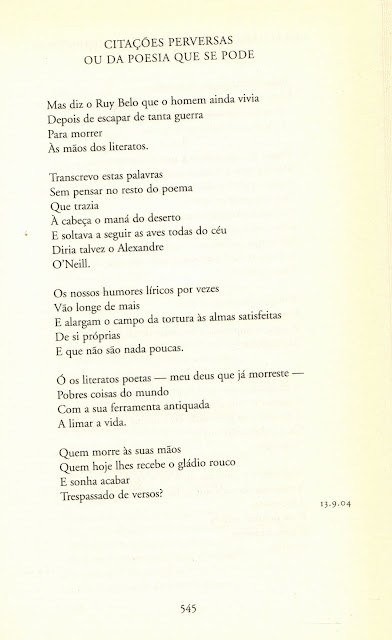 UM POEMA POR SEMANA — Para hoje escolhi Citações perversas ou da poesia que se pode de Armando Silva Carvalho (1938-2017), poeta central da poesia portuguesa contemporânea.