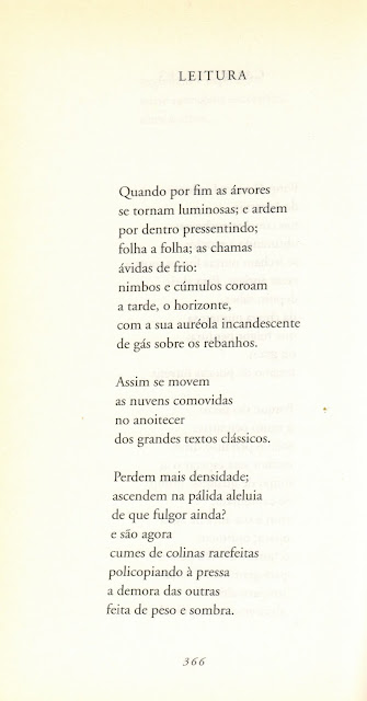 O poema desta semana pertence a Pastoral (1977), o derradeiro ciclo de Oliveira. A imagem foi obtida a partir de Trabalho Poético, volume da obra poética completa [Assírio & Alvim, 2003] na qual o autor refunde e reescreve toda a poesia publicada, acrescentando-lhe Pastoral.