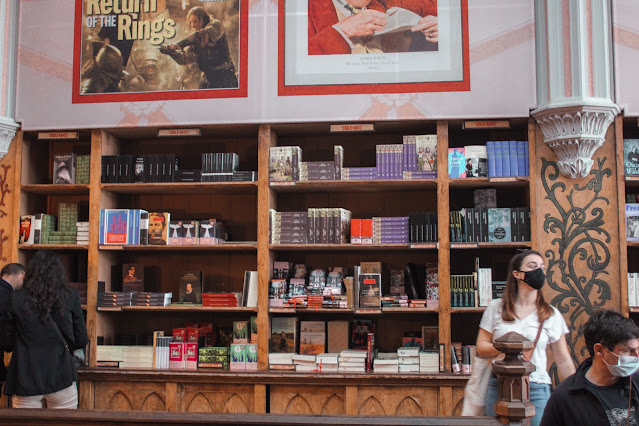 Sinto que agendei a visita para a semana mais caótica, mas quis reservar a manhã do meu trigésimo aniversário para este reencontro. Embora tenha passado mais tempo na fila e o local estivesse quase lotado [o que condiciona um pouco o momento], deixei-me levar pelo tom hipnótico de cada recanto, observando o espólio livrólico que tem para oferecer. E de olhar atento, perdi-me pelas estantes tão coloridas e variadas nos títulos, nos idiomas, nos géneros, nos autores; perdi-me nas histórias que nos vão contando em surdina.