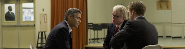 Outro aspecto que valoriza o filme é a iluminação. Ela já havia sido bem trabalhada no filme anterior de George Clooney – Good Night, and Good Luck –, mas aqui assume uma função narrativa e até política, hierarquizando a maneira como devemos olhar para as cenas e para os personagens. Embora um uso como esse seja relativamente comum em filmes onde há poder político em jogo, aqui a iluminação tem opinião própria e acompanha o que você deveria estar pensando a respeito dos personagens, demonstrando desde fragilidade até falta de caráter. Sim, o filme tem opinião própria a respeito de si. Tem gente que acha isso ruim, mas é apenas uma escolha narrativa.
