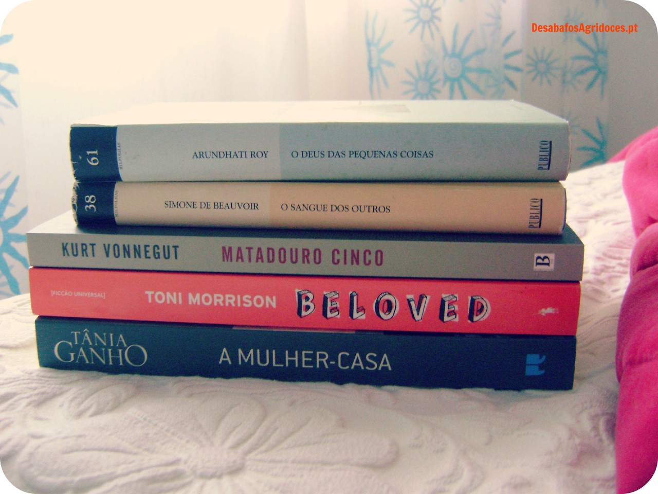 O Slaughterhouse 5 foi a única excepção porque já o li e queria uma versão em papel - que por acaso estava nova, a um preço muito bom, no meio de outros livros avulsos. Nunca li nenhuma das autoras que trouxe: mal posso esperar por experimentar! Nem consegui arrumá-los assim que cheguei, tive que colocá-los sob a cama e folhear cada um deles. Sou uma booklover, não me julguem. Sniffar livros, abraçá-los, e\ou ficar a apreciar capas e lombadas durante 15 minutos seguidos são comportamentos que deviam ser considerados normais naquele recinto. A Mulher-Casa também estava nos avulsos e os outros três foram em segunda mão.
