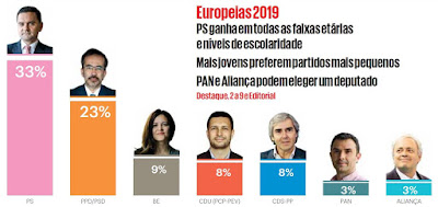 PSD = 23% / BE = 9% / CDU = 8% / CDS = 8% / PAN = 3% / ALIANÇA = 3%