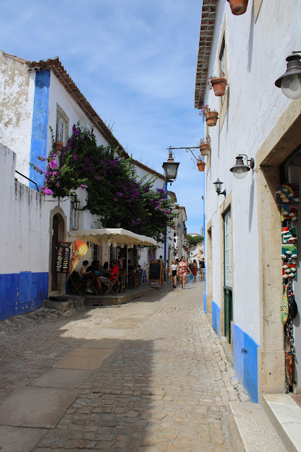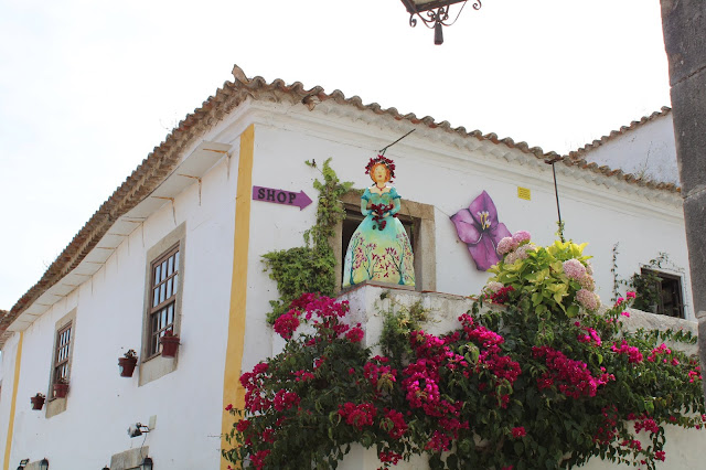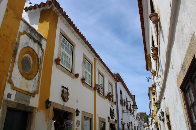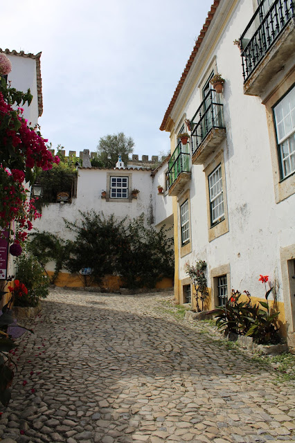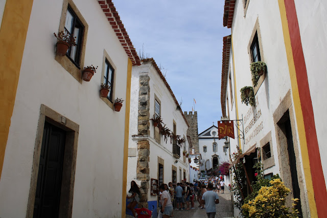 No topo da colina, há um castelo que atrai toda a nossa atenção. Mas até chegarmos aos seus encantos, vamos embarcar numa viagem fabulosa e rica sensorialmente. A entrada principal é a Porta da Vila - com um «interior revestido de azulejos», atualmente em manutenção -, que nos encaminha para a Rua Direita e para uma série de estímulos visuais, pois somos rodeados de casas, lojas de artesanato, restaurantes, galerias de arte e buganvílias, que eu adoro. Há uma certa urgência e um pulsar de vida que nos aumenta a vontade de continuar e de explorar cada recanto. Percorrer as suas ruas proporciona-nos, ainda, um contacto com vários estilos arquitetónicos, que resistiram à passagem do tempo, tornando Óbidos numa verdadeira obra de arte.