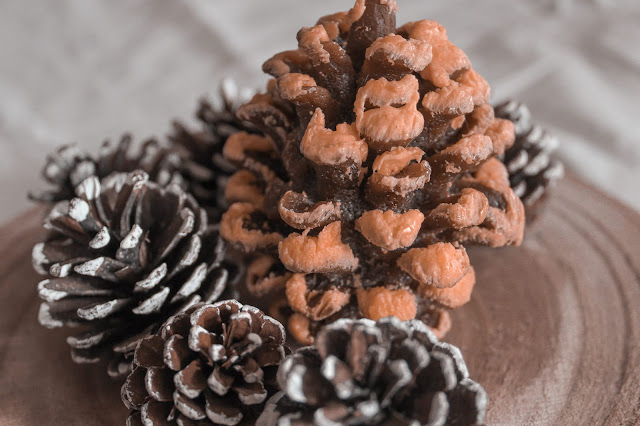 [Símbolo de esperança e união familiar, as pinhas são um elemento bastante recorrente nas decorações natalícias. No entanto, mantenho-as presentes durante todo o ano, não só por representarem uma ligação tão importante para mim, mas também por serem um pedaço de natureza a complementar a casa. Além disso, adoro o seu formato em camadas e o facto de me remeterem para uma das minhas estações do ano favoritas].