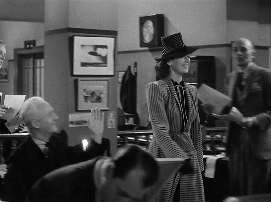 Quando Hildy se despede de Bruce e marcha em direção ao escritório de Walter, atravessando o corredor de maneira altiva, a rapidez cria uma harmonia com a fauna da redação, Hawks faz transparecer, no ritmo do olhar que corre com a personagem, o pertencimento deste corpo a este espaço.