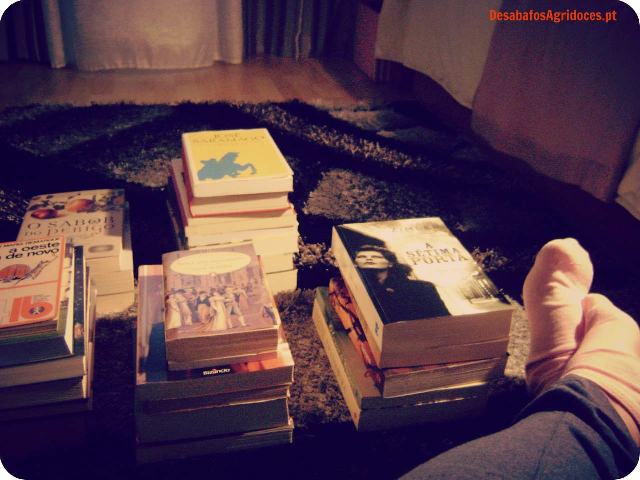 A propósito do amor de grande parte dos amantes de livros por listas encontrei umas engraçadas no blog ler por aí - dá para marcar que já lemos e ver o resultado. 99 Classic Books Challenge e o meu resultado - 32; um que diz: BBC Believes You Only Read 6 of These Books...Não sei porque é que eles achariam tal, mas o meu resultado também coitado - 25\100, a lista da Rory Gilmore e daí já li 46...Tudo bem que aquilo tem 339 títulos. Convém dizer que algumas coisas ainda não li porque ainda não encontrei simplesmente. Mas a pressão: tenho de ler estes 100 livros antes de morrer senão o quê? 100 cervejas que deve beber, 100 sítios que deve visitar, 100 sítios onde deve fazer amor...Tenho de arranjar um tipo primeiro! Se calhar é melhor ir aos tais lugares fazer lá amor e beber as cervejas para poupar o tempo. Dá sempre a sensação que não estamos a aproveitar mesmo a vida...Quem segue blogs literários também pode sofrer pressão. Uma pessoa fica contente por ler 15 livros num ano e depois vê pessoal que lê 250. A tentação de querer ler mais e de querer ler títulos da moda. Ou sucumbe e acabam por ler ou ficam enjoados e perdem a vontade. Queremos ler tudo na maior quantidade possível, então se tivermos muitos acumulados...Até não tenho assim tantos.