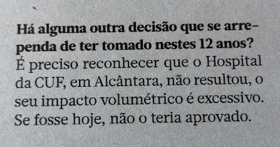 O argumento de Salgado deixou-me estupefacto. Não faz sentido argumentar com a volumetria do novo Hospital da CUF.