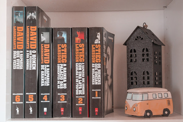 A prateleira superior da minha estante está reservada a algumas obras essenciais, sendo que a maior parte dessa área é ocupada pelos seis livros que compõem a saga da minha vida - a Millennium. Quando me ofereceram o primeiro volume, estava longe de imaginar o quanto se tornaria especial, mas a verdade é que me conquistou para sempre. E aconselho-a em todas as oportunidades que aparecem, porque tem uma dinâmica e uma mensagem poderosas. Expondo problemas fraturantes da sociedade - sobretudo, sueca -, estabelece uma análise detalhada do caráter humano. E coloca-nos em contacto com personagens memoráveis.