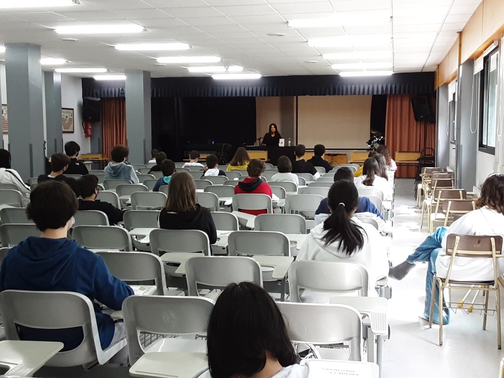 Acompañounos hoxe Yolanda Castaño, autora da biografía Xela quixo ser ela (Xerais) nun encontro no que resultou de agradecer a adopción pola súa parte dun discurso áxil, fluído e accesible para o alumnado máis novo do noso centro. Deste xeito centrouse -fundamentalmente aínda que non só- no deseño dos primeiros anos de vida de Xela Arias -con especial profundidade no seu entorno familiar- que tamén foron os da súa formación como persoa e como escritora. Asemade non deixou de remarcar a relevancia das súas ocupacións profesionais -sobre todo as desenvoltas no mundo da edición-, os traballos nos eidos da tradución e nos da creación literaria, ámbito no que aclarou as claves dese efecto de estrañeza que por veces amosa a súa poesía.
