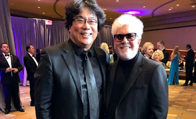 Na imagem, Almodóvar e Bong Joon-ho na noite dos Óscares. Clique.