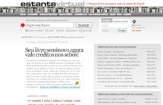 O “Estante Virtual” (http://www.estantevirtual.com.br/) reúne um total de 260 sebos em 74 cidades brasileiras, num total de quatro milhões de títulos disponíveis. Verifiquei, orgulhoso, que tanto o Cata-Livros de Ronaldo quanto o Sebo Cultural de Heriberto estão lá, marcando presença. Quando escolhemos os livros, é só ver quanto custa o frete da cidade de origem até a nossa, e combinar com o sebista a forma de pagamento (em geral é depósito bancário).
