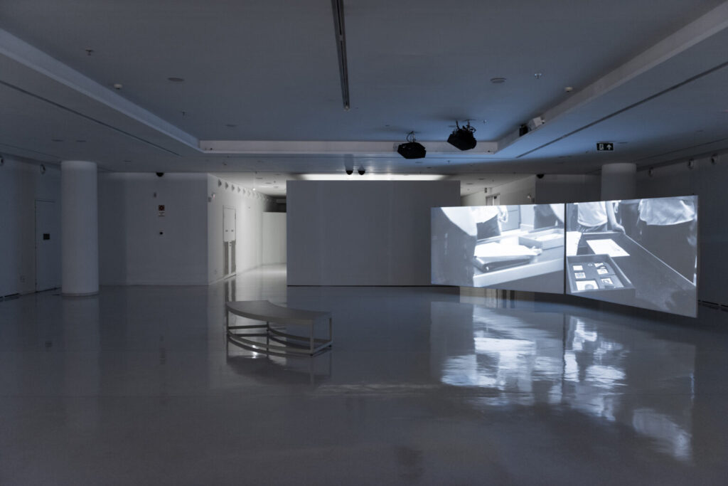 A fragilidade da instituição não pode ser sanada apenas com reforço das suas diretrizes de segurança. Uma sinfonia de alarmes que gritam beep quando ousamos nos aproximar demais de uma obra ou câmeras de vigilância que, na tentativa de tudo capturar, não se detêm em nenhuma imagem em nada auxiliam na experiência, como o artista ressalta em proposições presentes em sua individual no MAC USP. Pelo contrário, deixam ela ainda mais proibitiva, explicitando a forma coercitiva como as instituições adestram os corpos que ali passeiam. Os museus, afinal, não são espaços do livre agir, mas ambientes que condicionam certos comportamentos, que dirigem a contemplação, que impõem discursos. O problema reside, por sua vez, não no esquema de proteção, mas na própria noção de posse ali contida.