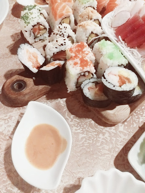 Estreei-me no Sushi: Estava desejosa de experimentar este prato japonês. Mas fui adiando por receio, por falta de companhia, por não ter referências ao nível de locais apropriados. Até que, desafiada pela minha melhor amiga, fiz a minha estreia no Lama's Temple. E posso garantir que adorei, ficando rendida a esta iguaria. A mistura de texturas e sabores é, sensorialmente, muito rica e deliciosa. Estava receosa de não gostar, mas as minhas expectativas foram superadas com muito sucesso. E mal posso esperar para repetir. Os astros estavam mesmo alinhados a meu favor. Tanto que, antes do jantar, ainda tive a sorte de assistir a um pôr do sol de tirar o fôlego.