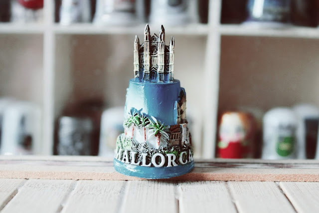 Recordações com amor: As minhas pessoas-luz sabem que faço coleção de dedais, por isso, sempre que vão de viagem, procuram trazer-me um como lembrança. Recentemente, a minha prima foi de férias para Palma de Maiorca e surpreendeu-me com um belo exemplar, que tem a catedral na parte superior. Passo a passo, a minha vitrine deixa de ter lugares disponíveis, mas o meu coração aumenta com tanto mimo.
