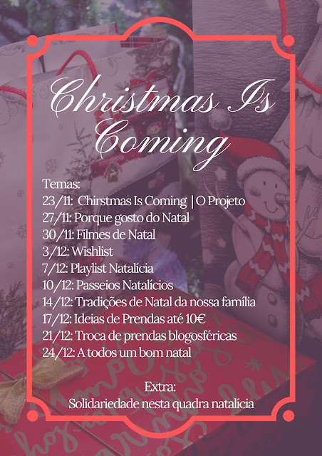 A partir de hoje, e até ao dia 24 de dezembro, o projeto Christmas Is Coming tem muito por onde crescer. Para terem uma noção do que o futuro reserva - e para que se possam organizar melhor, caso pretendam juntar-se a nós -, partilho o poster temático, com todas as informações necessárias. Como é possível verificar, a abordagem é descomplicada e sem grandes exigências. Porque o objetivo é mesmo abraçarmos a essência luminosa do Natal, vivendo-o em pleno.